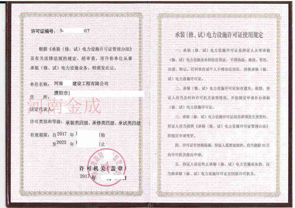 • 承裝(修、試)電力設施許可證
